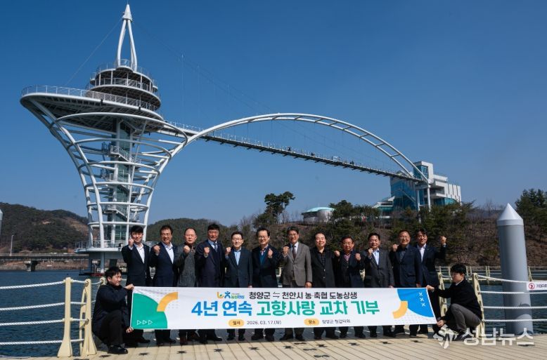 (성남뉴스) 청양군은 지난 17일 청양군 농축협과 천안시 농축협 관계자들이 한자리에 모여 고향사랑기부제 활성화를 위한 교차기부 협력을 지속하기로 뜻을 모았다고 밝혔다.