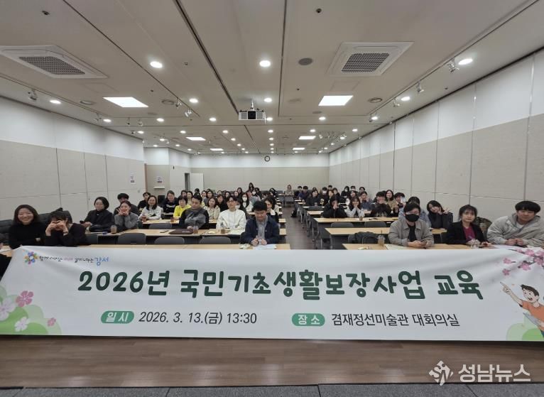 (성남뉴스) 서울 강서구는 지난 13일 겸재정선미술관에서 신규 임용 사회복지직 공무원과 주민센터 복지 담당자 등 70명을 대상으로 ‘2026년 국민기초생활보장사업’ 교육을 실시했다.