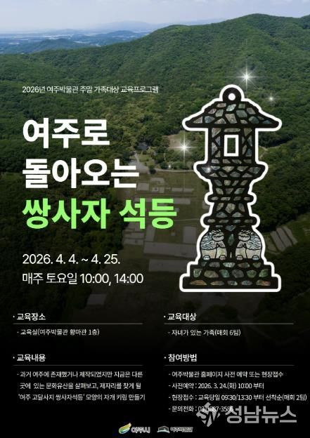 (성남뉴스) 여주시 여주박물관은 오는 4월 주말을 맞아 가족이 함께 지역 문화유산의 가치를 배우고 체험할 수 있는 교육프로그램 '여주로 돌아오는 쌍사자 석등'을 운영한다.