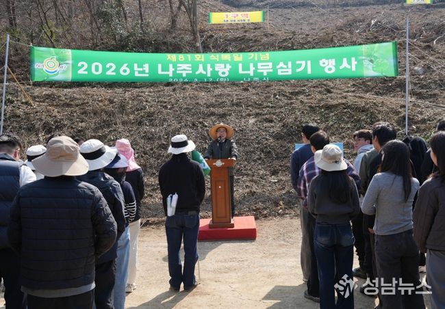 (성남뉴스) 전남 나주시가 탄소중립 실천과 지속 가능한 산림 조성을 위해 시민과 함께하는 나무심기 행사를 열고 생활권 녹지 확충에 나섰다.