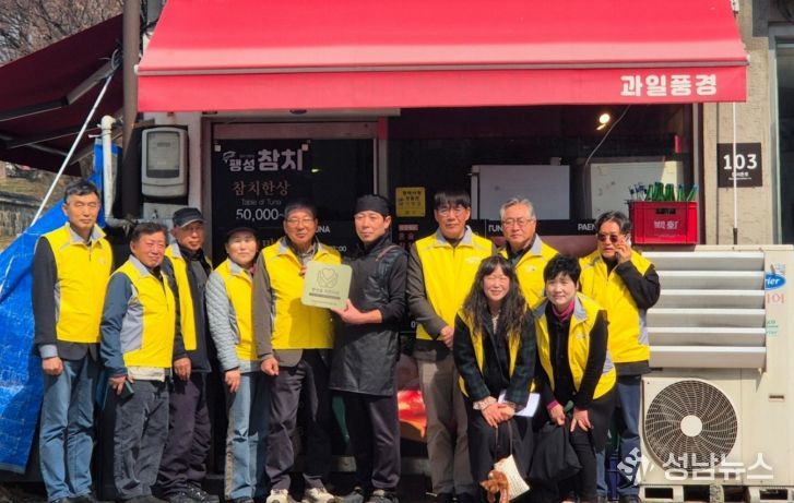 (성남뉴스) 평택시 팽성읍 지역사회보장협의체는 지난 3월 17일, 지역 내 참치요리 전문점인 팽성참치를 '착한 이웃'으로 선정하고 현판식을 진행했다.