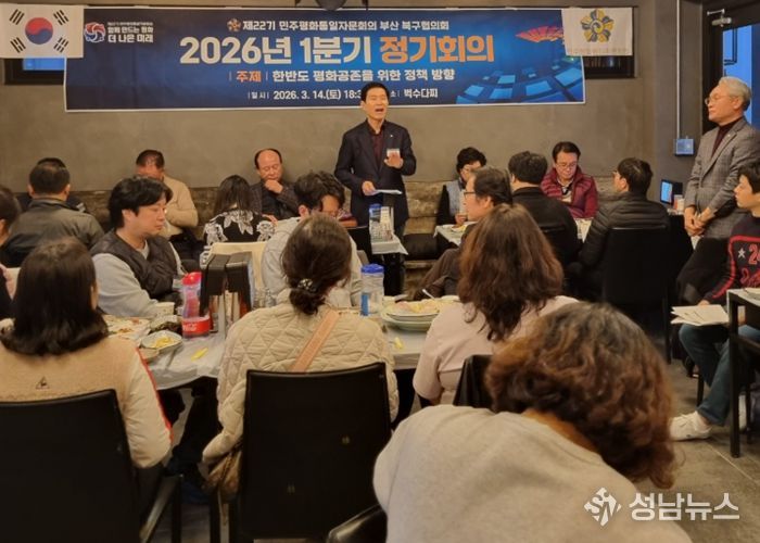 (성남뉴스) 민주평화통일자문회의 부산 북구협의회는 지난 14일 오후 6시 30분, 경남 통영에서 자문위원 31명이 참석한 가운데 ‘한반도 평화공존을 위한 대내외 정책 추진방향’을 주제로 ‘2026년 1분기 정기회의’를 개최했다.