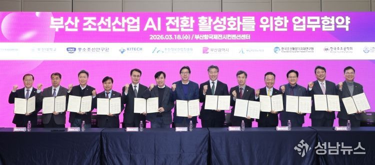 (성남뉴스) 부산시는 18일 오전 10시 부산항국제전시컨벤션센터에서 부산 조선산업의 인공지능(AI) 전환을 위한 업무협약을 체결하고 'AI 혁신 얼라이언스' 출범식을 개최한다고 밝혔다.