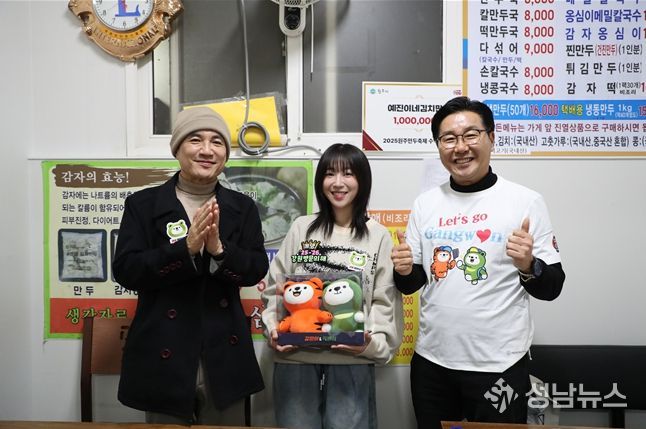(성남뉴스) 강원관광재단은 3월 18일 강원특별자치도 원주 도래미 시장에서 인기 크리에이터 쯔양과 함께 ‘2026 강원 방문의 해’ 및 ‘원주 만두축제’를 알리는 K-푸드 콘텐츠를 촬영했다.