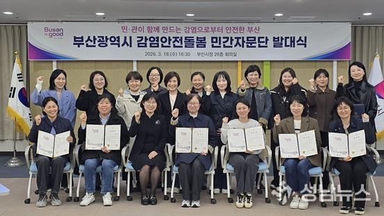 (성남뉴스) 부산시는 감염취약시설의 감염관리 역량 강화를 위해 어제(18일) 오후 4시 30분 시청 26층 회의실에서 '감염안전돌봄 민간자문단 발대식'을 개최했다고 밝혔다.