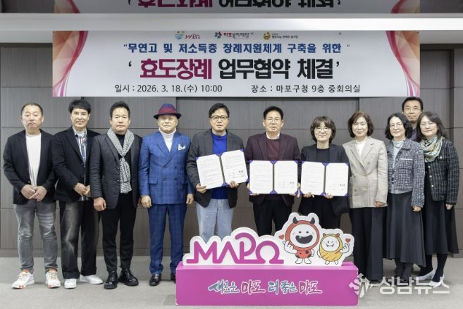 이를 위해 3월 18일 마포구는 민관 협력 기반의 장례 지원체계를 구축하고자 마포복지재단, (사)행복나눔 연예인봉사단과의 업무 협약식을 열었다.