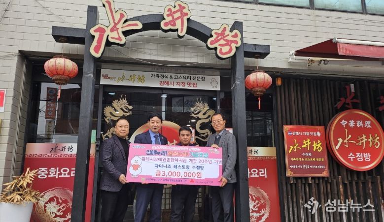 (재)김해시복지재단 김해시장애인종합복지관은 개관 20주년을 맞아 차이니즈레스토랑 수정방(대표 서종수)으로부터 300만원 상당의 중화요리 특식을 후원 받았다고 밝혔다.
