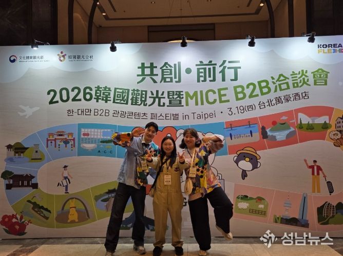 군은 19일 대만 타이베이 메리어트호텔에서 열린 ‘2026 한-대만 B2B 관광콘텐츠 페스티벌 in Taipei’에 참가해 대만 현지 여행사를 대상으로 음성품바축제 관광상품 세일즈 마케팅을 전개했다고 밝혔다.
