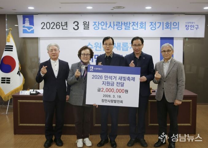 수원시 장안구 대표 봉사단체 장안사랑발전회가 지난 19일, '2026 만석거 새빛축제'의 성공적인 개최를 응원하며 지원금 200만원을 전달했다.