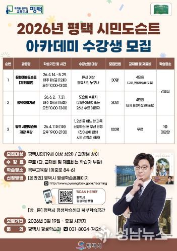 한편, ‘평택 시민도슨트 아카데미’는 2025년 경기도 평생학습대상에서 우수사례로 선정된 바 있다. 배움을 지역과 연결하고 다음 세대와 잇는 평생학습 모델로 꾸준히 주목받고 있다. 수강 신청은 평생학습포털에서 온라인으로 가능하다.