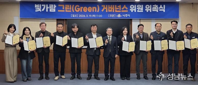나주시는 지난 19일 시청 이화실에서 빛가람혁신도시의 체계적인 공원 환경 조성과 효율적인 녹지 관리를 위한 ‘빛가람 그린거버넌스’ 재구성 위촉식을 개최했다고 20일 밝혔다.