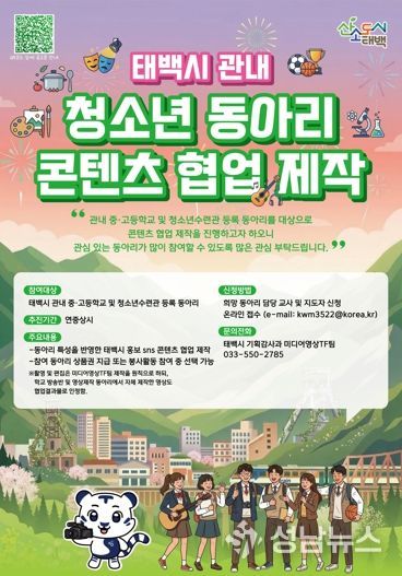 이번 사업은 태백시 관내 중·고등학교 및 청소년수련관에 등록된 동아리를 대상으로 하며, 동아리의 특성을 반영한 태백시 홍보 SNS 콘텐츠를 제작할 예정이다.