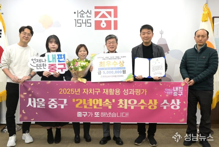 서울 중구는 서울시가 실시한 ‘2025년 자치구 재활용 성과평가’에서 지난해에 이어 2년 연속 최우수상을 수상했다.