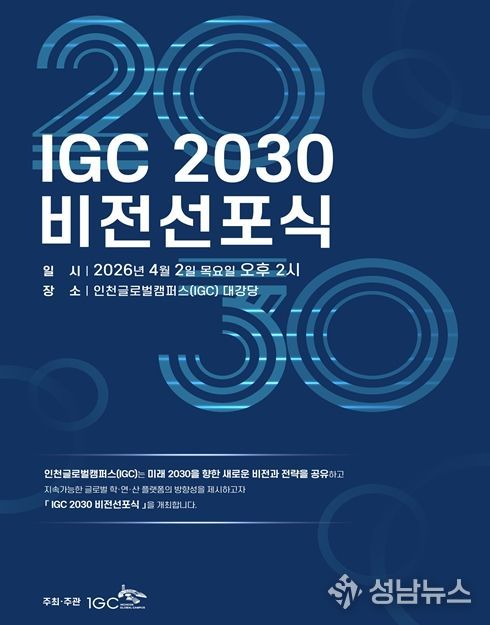 인천글로벌캠퍼스운영재단은 오는 4월 2일, 미래 2030년을 향한 새로운 이정표를 세우는 ‘IGC 2030 비전선포식’을 개최한다고 밝혔다.