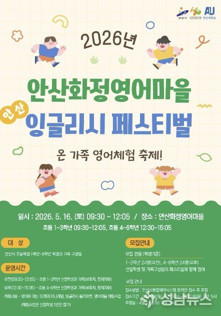 안산시가 설립하고 안산대학교가 운영하는 안산화정영어마을은 ‘온 가족 영어체험 축제!’를 주제로 ‘안산 잉글리시 페스티벌’을 운영한다고 24일 밝혔다.