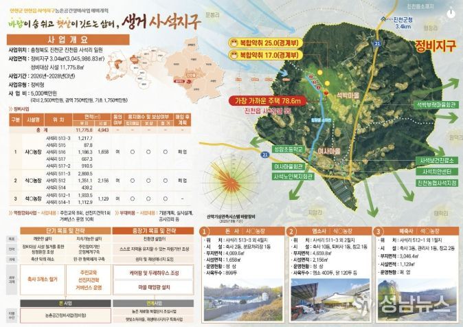 사업 대상지인 진천읍 사석리는 축사 밀집으로 인한 민원이 지속적으로 제기돼 온 지역으로, 군은 주거지 인근 축사 2개소와 폐축사 1개소를 정비할 예정이다.
