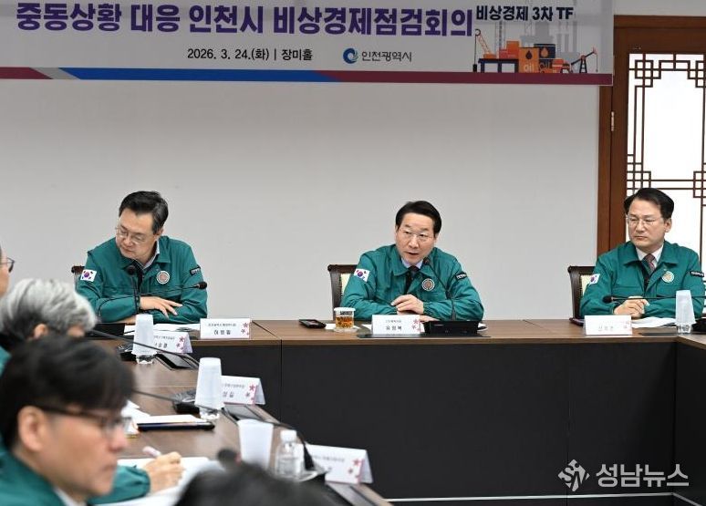 인천광역시는 중동 전쟁 장기화에 따른 지역경제 피해를 최소화하고 선제적인 대응 방안을 논의하기 위해 유정복 시장이 직접 주재하는‘비상경제 점검회의’를 지난 3월 12일에 이어 3월 24일 아침 시청 본관 장미홀에서 개최했다고 밝혔다.