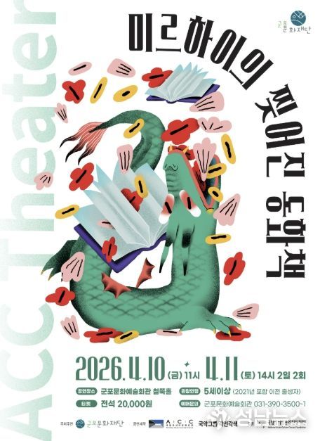 군포문화재단은 어린이와 가족이 함께 관람할 수 있는 공연 '미르하이의 찢어진 동화책'을 4월 10일~11일 군포문화예술회관 철쭉홀에서 개최한다고 밝혔다. 이번 공연은 2026 국립아시아문화전당재단 어린이 공연 유통 공모사업의 일환으로, 국립아시아문화전당(ACC) 창·제작 어린이 공연을 지역에 소개하기 위해 마련됐다.