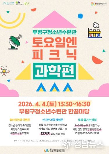 부평구청소년수련관은 오는 4월 4일 오후 1시 30분, 수련관 한꿈마당에서 과학을 주제로 ‘2026 4월 토요일엔 피크닉’을 개최한다.