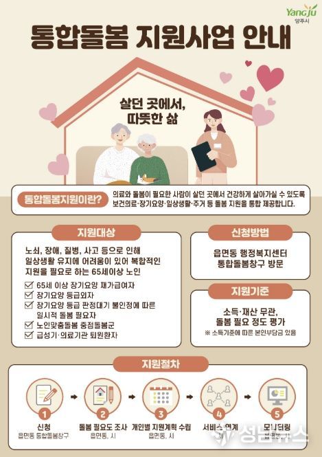 양주시가 오는 3월 27일 ‘돌봄통합지원법’의 전국 시행에 맞춰 양주형 통합돌봄 모델인 ‘온(溫)케어’ 서비스를 본격적으로 운영한다.
