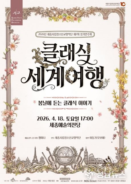 세종시립청소년교향악단이 내달 18일 오후 5시 세종예술의전당에서 제7회 정기연주회 ‘클래식 세계여행’을 선보인다.