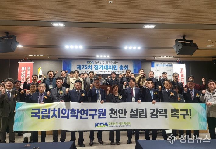 이날 도와 천안시 공무원, 충남치과의사회 회원 및 유관 의약단체장 등 100여 명은 결의문을 통해 △대통령 공약의 즉각적인 이행 △행정 편의주의적 공모 방식 철회 △천안 설립 공식화를 정부와 보건복지부에 강력히 요구했다.