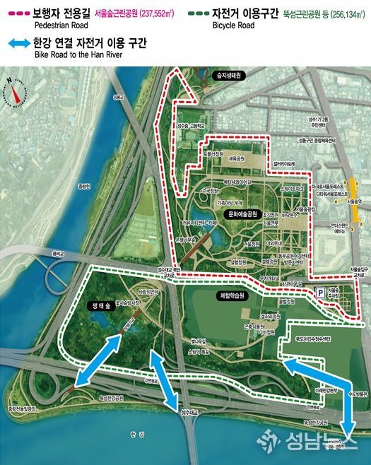 서울시는 서울숲근린공원 내 보행 안전 및 쾌적한 공원 이용을 위해 공원길 총 22,747.6m을 ‘보행자전용길’로 3월 26일부터 지정한다고 밝혔다.
