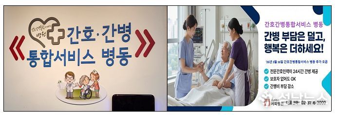 서울시는 보호자와 가족의 간병 부담을 덜어주고 보다 안전한 입원환경을 제공하기 위해 기존 1개 병동, 35병상이었던 ‘서북병원 간호․간병통합서비스 병동’을 2개 병동, 85병상으로 확대한다고 밝혔다.