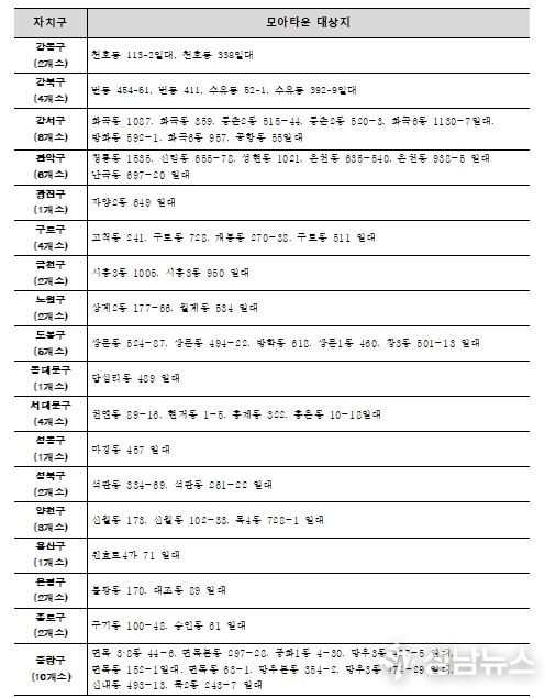 특히, 이번 모아타운 대상지는 동북권 26곳, 서남권 23곳, 서북권 6곳 등 서울 강북과 서남권 등에 위치한 모아타운의 사업 여건이 개선될 것으로 보인다.