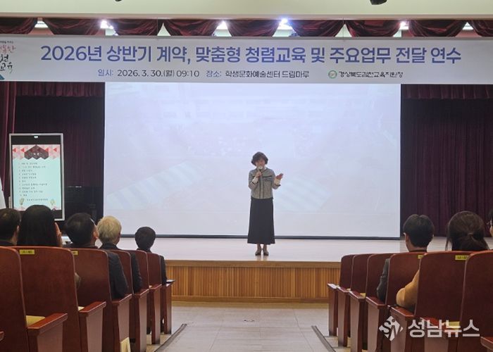 경상북도김천교육지원청은 3월 30일 김천학생문화예술센터에서 소속 공무원 및 공·사립학교 행정실 직원 130여 명을 대상으로 '2026년 상반기 계약, 맞춤형 청렴교육 및 주요업무 전달연수'를 실시했다.