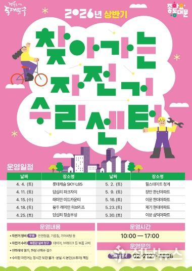 서울 동대문구는 자전거 이용을 활성화하고 친환경 교통문화를 확산하기 위해 4월부터 ‘2026 찾아가는 수리센터’를 본격 운영한다고 밝혔다.