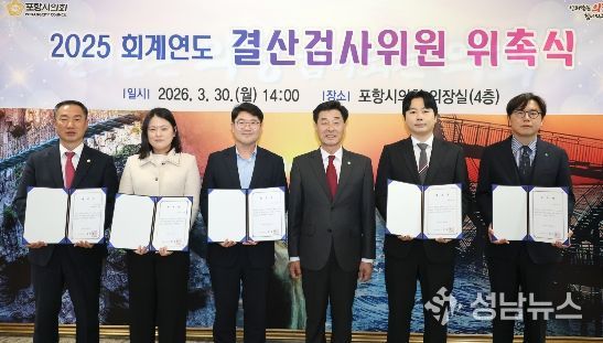 포항시의회는 30일 오후 의장실에서 김형철·김상백 의원, 고가영·김광재·박민호·조영대 세무사를 2025회계연도 결산검사위원으로 위촉했다.