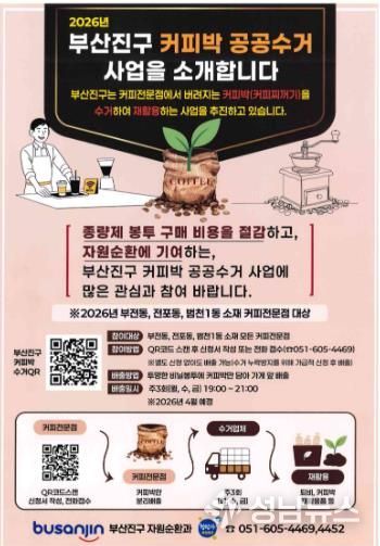 부산 부산진구는 오는 4월부터 부전동, 전포동, 범천1동에 소재한 커피전문점을 대상으로 커피박 공공수거 사업을 시행한다.