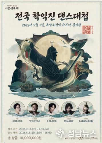 ‘전국 학익진 댄스대첩 경연대회’는 이순신 장군의 대표 전술인 ‘학익진’을 모티브로 기획된 전국 단위 댄스 경연대회로, 다양한 장르의 댄스팀이 참여하는 퍼포먼스 경연 프로그램이다.