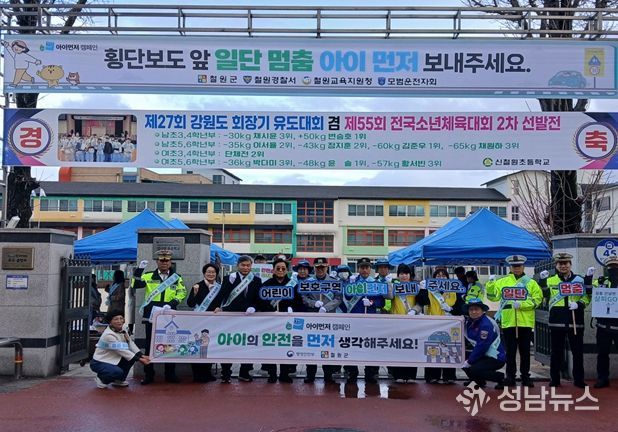 캠페인에는 철원군을 비롯해 철원경찰서, 철원교육지원청, 신철원초등학교, 모범운전자회, 녹색어머니회 등 유관기관 및 단체 관계자 총 50여 명이 함께 참여하여, 민관합동으로 어린이 안전 확보에 힘을 모았다.
