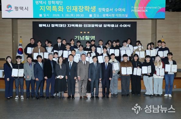 평택시 장학재단은 지난 3월 28일 평택시청 대회의실에서 '2026년도 지역특화 인재 장학생 장학증서 수여식'을 개최했다.