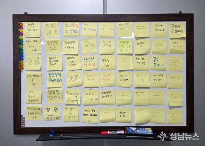 이번 캠페인은 공원사업과 직원들이 직접 청렴 다짐 문구를 메모지에 작성하고, 화이트보드에 부착하는 방식으로 진행됐다.