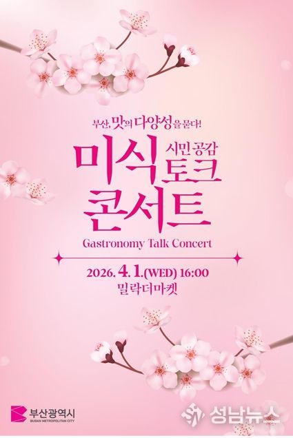 부산시는 오늘(1일) 오후 4시 밀락더마켓에서 '부산, 맛의 다양성을 묻다!' 시민 공감미식 토크 콘서트를 개최해 2026년 미식관광 정책 방향을 시민과 공유한다고 밝혔다.