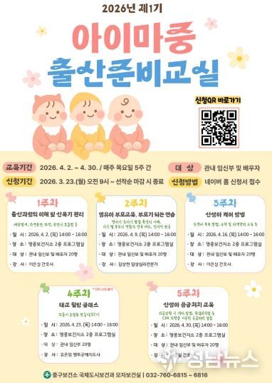 인천시 중구는 관내 임산부와 배우자를 대상으로 건강한 출산과 안정적인 육아 준비를 돕기 위한 ‘2026년 제1기 아이마중 출산준비교실’을 운영한다.