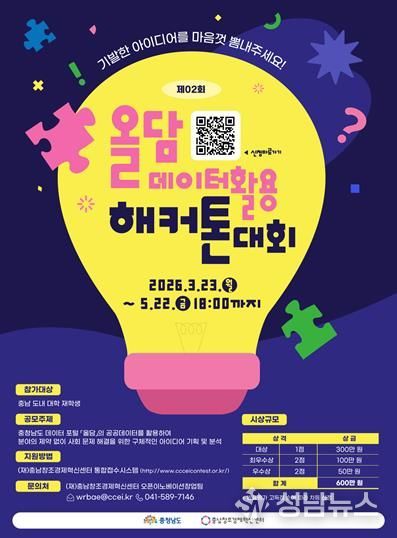 충남창조경제혁신센터는 충남도내 대학 재학생을 대상으로 공공데이터를 활용한 창의적 아이디어 발굴을 위한 '제2회 올담 데이터 활용 해커톤' 참가자를 오는 5월 22일까지 모집한다고 밝혔다.