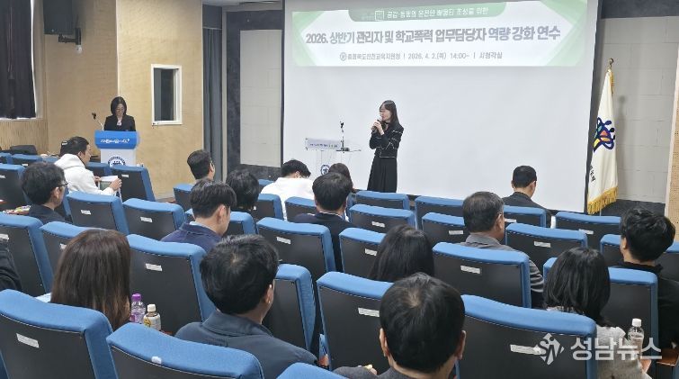충청북도진천교육지원청은 4월 2일 학교지원센터 시청각실에서 2026. 상반기 관리자 및 학교폭력 책임교사 대상 역량 강화 연수를 실시했다.