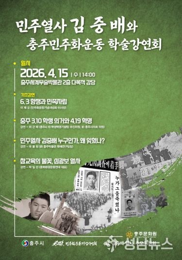 충주문화원(원장 유진태)은 ‘민주열사 김중배와 충주 민주화 운동’ 이라는 주제로 오는 15일(수) 오후 2시 충주세계무술박물관 2층 다목적강당에서 학술강연회를 개최한다.