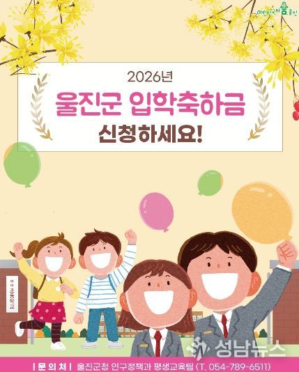 한편 입학축하금 지원과 관련한 자세한 사항은 주소지 읍·면 사무소 또는 울진군청 인구정책과 평생교육팀으로 문의하면 된다.