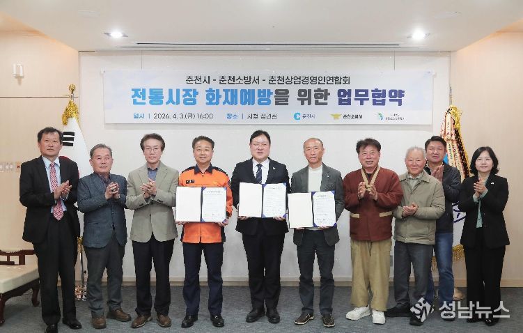 춘천시는 3일 시청 접견실에서 춘천소방서, (사)춘천상업경영인연합회와 전통시장 화재예방 업무협약을 체결했다.