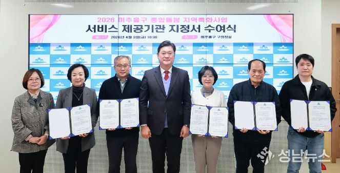 인천 미추홀구는 3일 구청장실에서 ‘2026년 미추홀구 통합 돌봄 지역특화 사업을 수행할 서비스 제공기관 5곳에 지정서를 수여했다고 밝혔다.