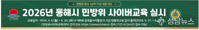 동해시는 민방위 대원의 교육 편의성을 높이고 재난 대응 역량을 강화하기 위해 오는 4월 6일부터 6월 30일까지 상반기 민방위 사이버 교육을 실시한다고 밝혔다.