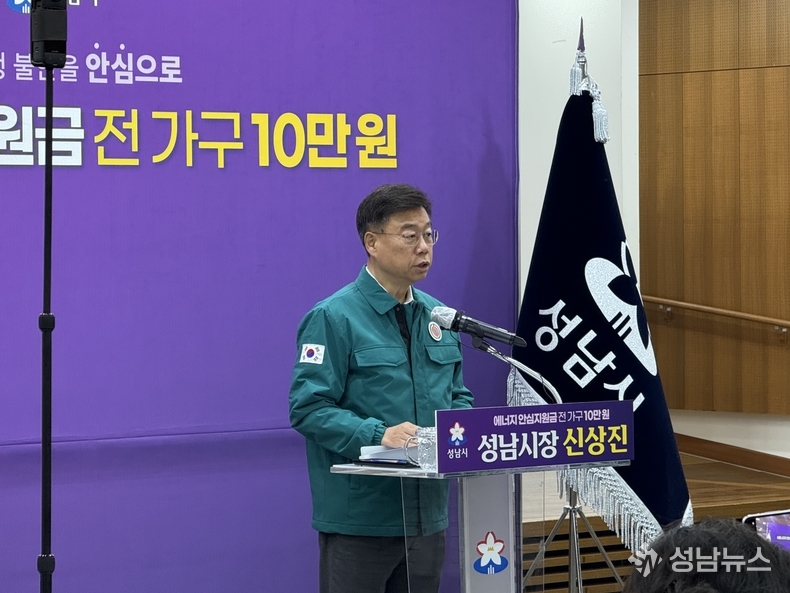 신상진 성남시장이 6일 오전 11시 성남시청 한누리(3층)에서 기자회견을 열고, 성남시민 전 가구를 대상으로 '에너지 안심지원금'을 지급하겠다고 밝혔다.