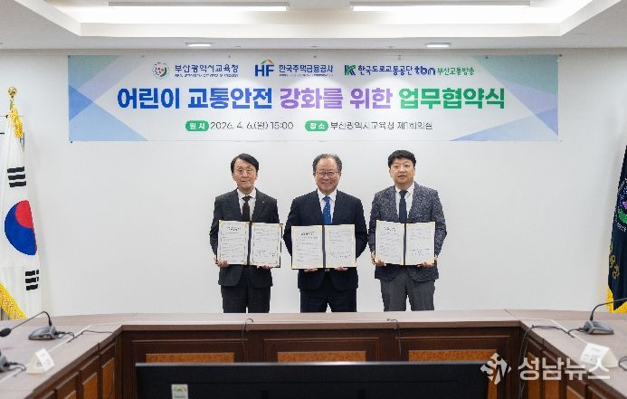 부산광역시교육청은 지난 6일 오후 시교육청 회의실에서 어린이 교통사고 예방과 안전한 통학환경 조성을 위해 한국주택금융공사, 한국도로교통공단 tbn부산교통방송과 ‘어린이 교통안전 강화를 위한 업무 협약’을 체결했다.