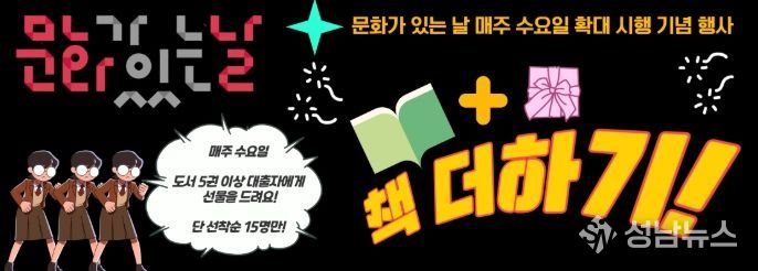 윤민경 관장은 “문화가 있는 날이 매주로 확대됨에 따라, 이용자들이 일상 속에서 더욱 자주 도서관을 찾을 수 있는 계기가 되길 바란다”며 “'책 더하기' 행사를 통해 독서의 즐거움과 소소한 기쁨을 함께 느끼는 시간이 되기를 기대한다”고 밝혔다.