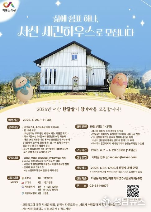 사업에 대한 자세한 사항은 서산시 누리집 공지사항에서 확인할 수 있다.